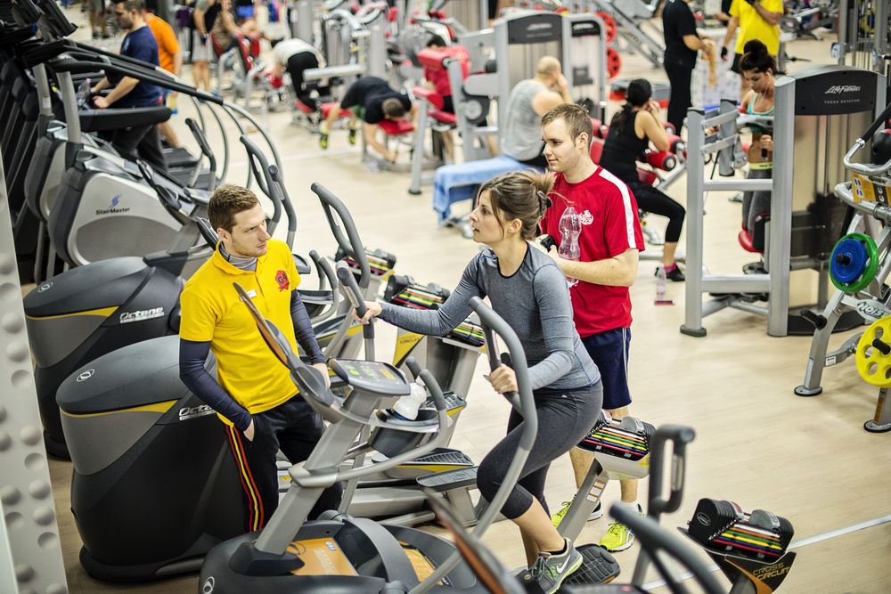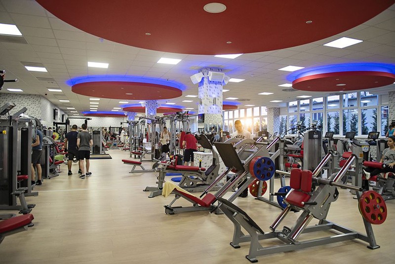 A világos, tágas 650m²-es edzőteremben a legmodernebb, legbiztonságosabb Cardiogépek (PULSEFITNESS, OCTANEFITNESS edzőtermi kerékpárok, futópadok, taposógépek, lépcsőző-gépek, és elliptikus trénerek) és erősítőgépek (HOIST, HAMMER STRENGHT, LIFETITNESS, PANATTA) állnak a vendégek rendelkezésére.
